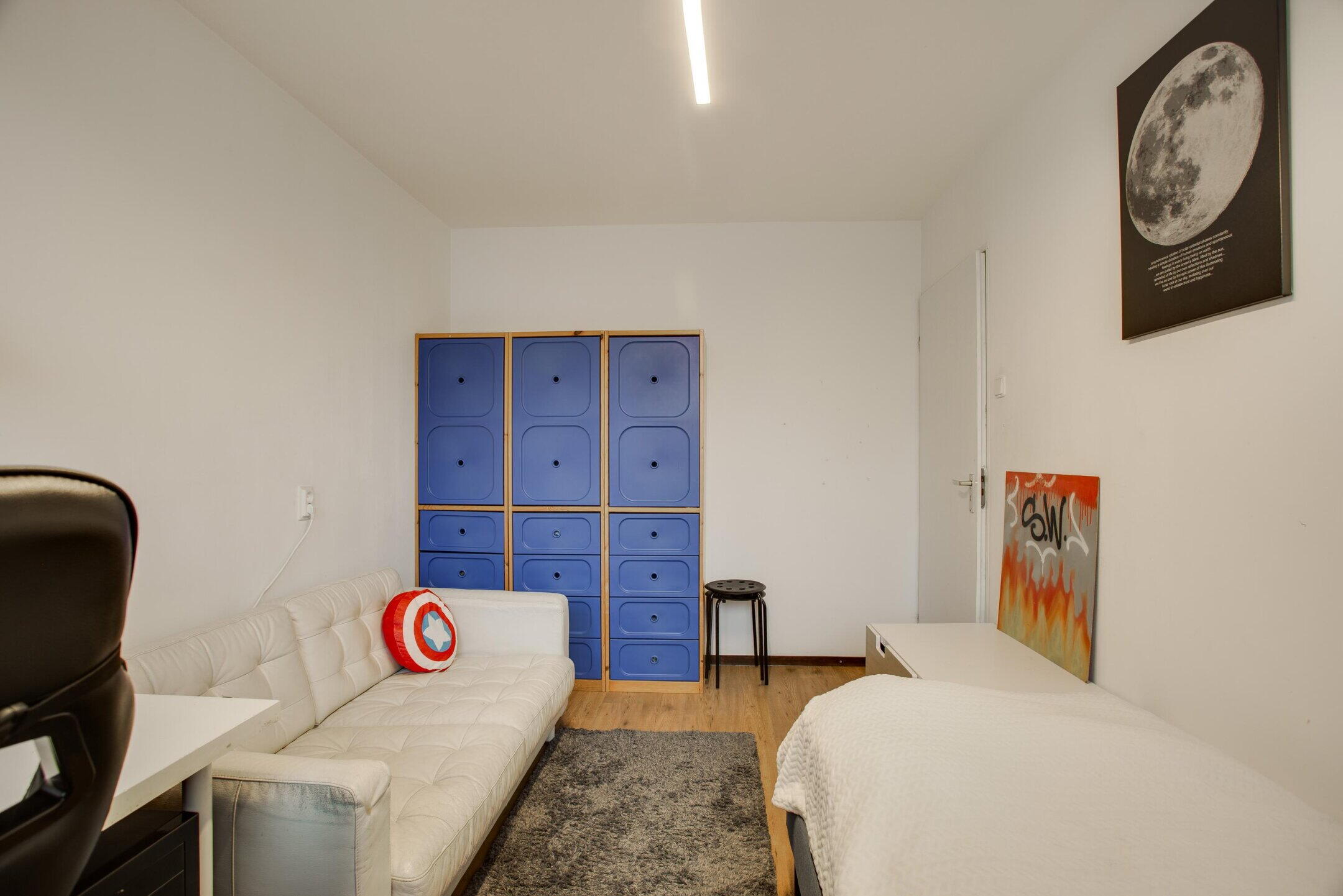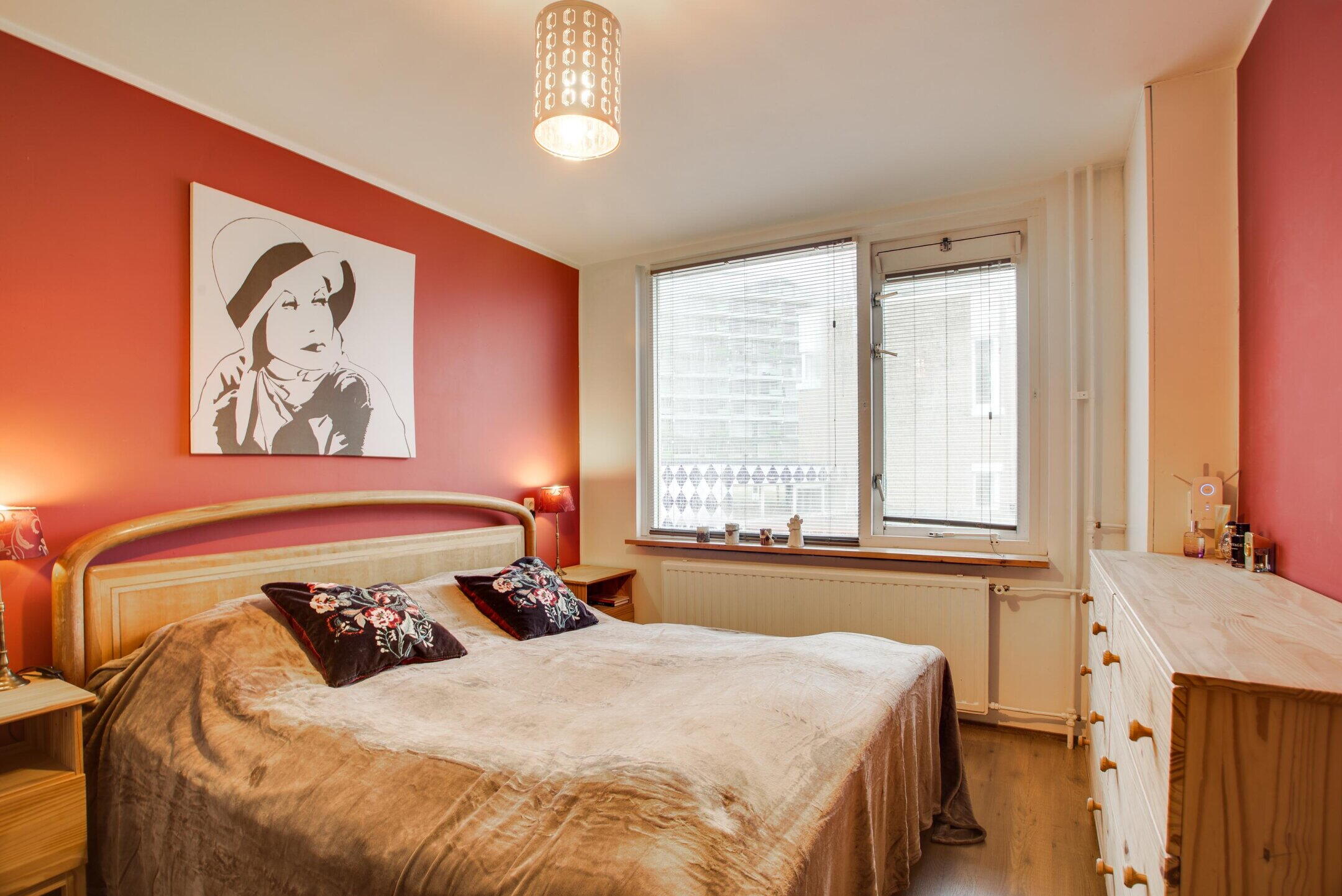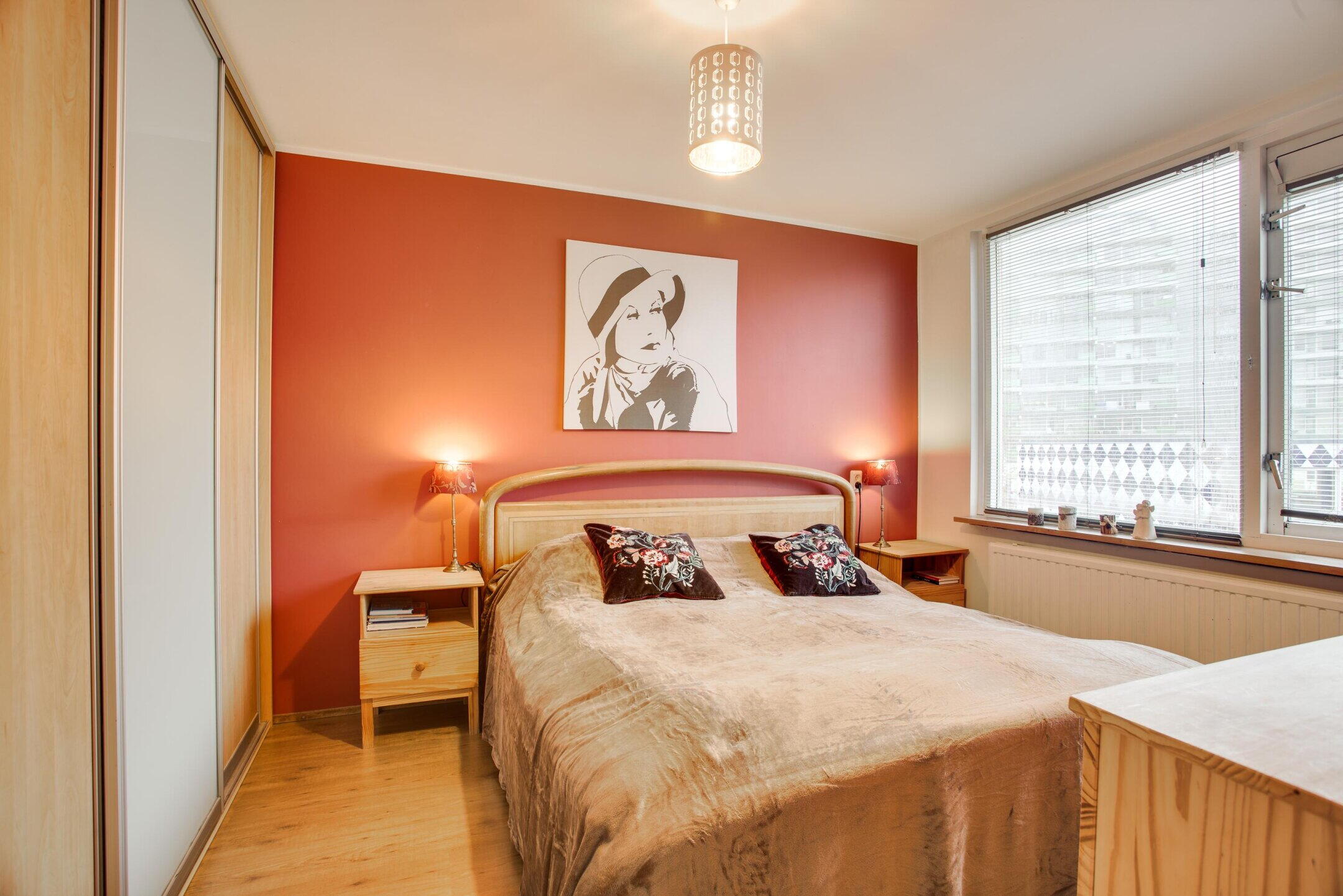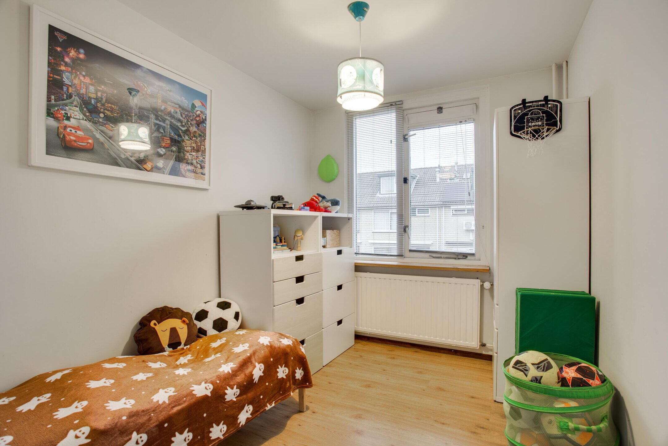 De slaapkamer is prettig van formaat en profiteert aan de voorzijde van een dakkapel, wat zorgt voor extra ruimte en een aangename lichtinval. Hierdoor is dit een comfortabele en veelzijdige kamer, geschikt als extra slaapkamer, werkkamer of hobbyruimte.